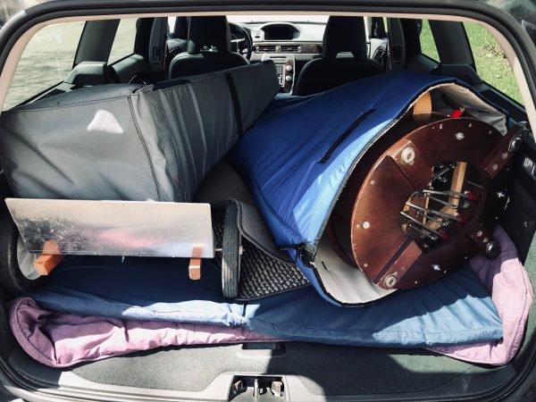 Two different harp gigs necessitated two different harps, which necessitated careful packing. But it all fit in the car… eventually. I drove up on Friday afternoon, feeling thankful for the lovely blue skies and dry roads.